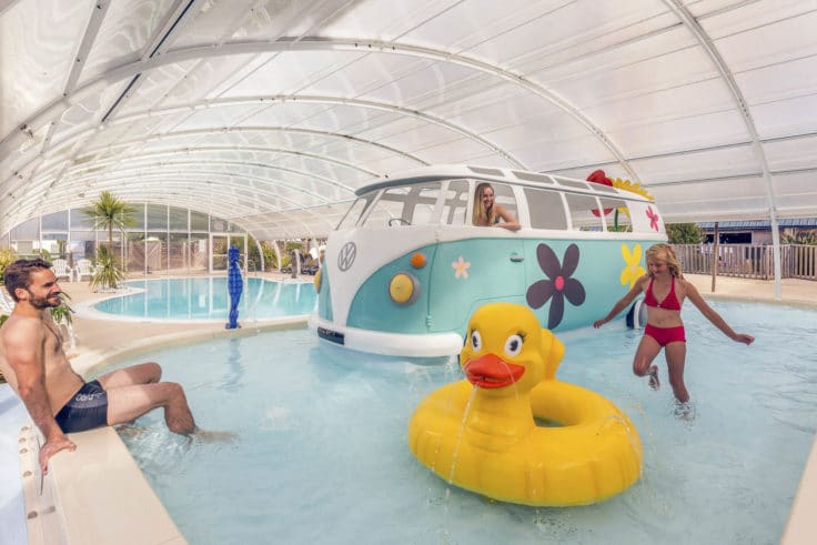 A l’instar des autres campings Yelloh ! Village club, notre parc aquatique se veut emblématique. Depuis 2016, une longère présente au centre du village a été complètement transformée et accueille désormais une merveilleuse piscine de nage d’un calme olympien, dont l’eau est chauffée à une température de 27°C… Pour les enfants, une bulle accueille piscine et pataugeoire avec jeux d’eaux et accessoires amusants. A l’extérieur les toboggans aquatiques incontournables, rivalisent avec la piscine multi-jets, bains bouillonnants, rivière… L’espace aquatique est vraiment sensationnel et ce sont nos clients qui le disent !